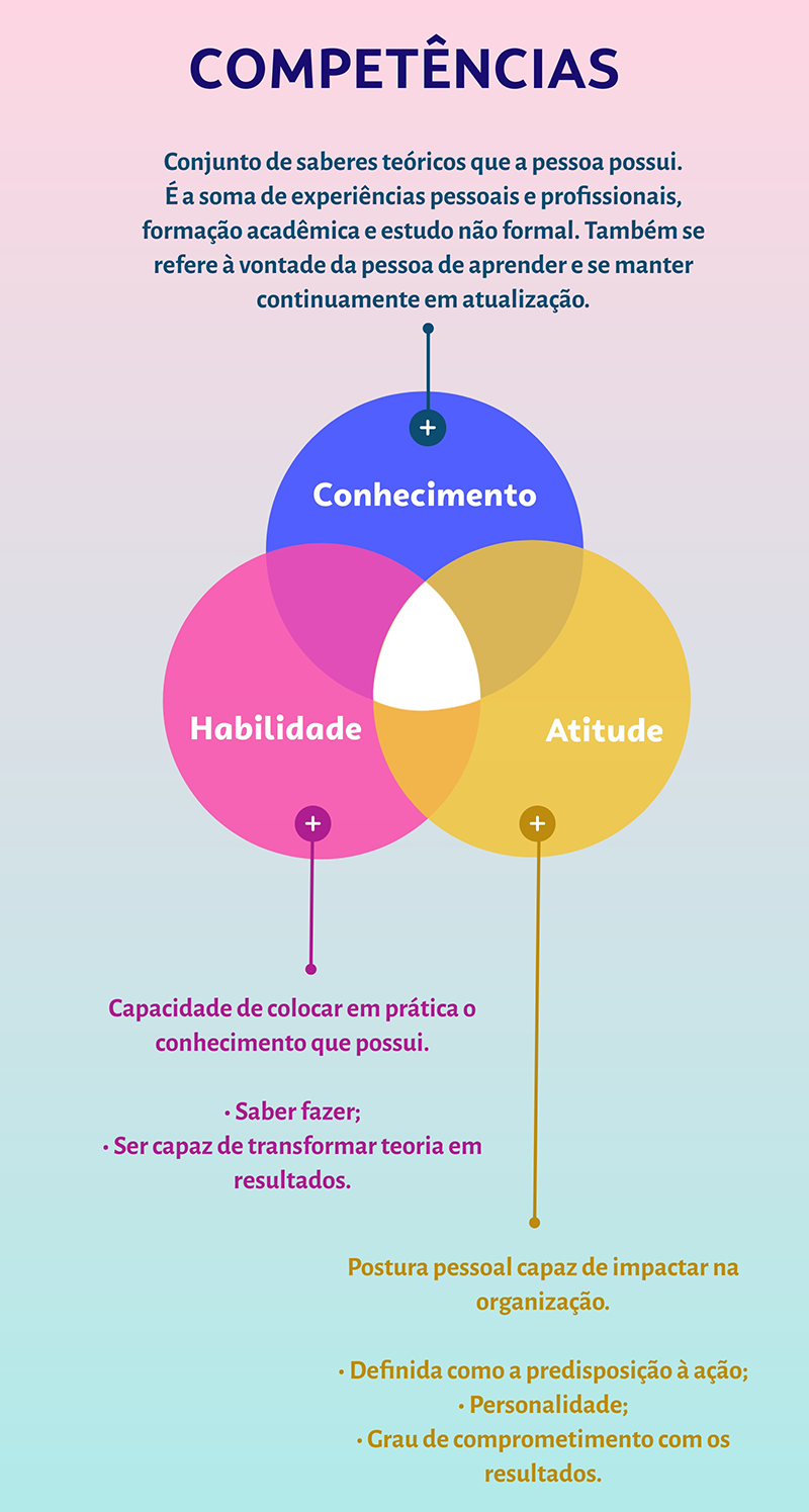 A competência compreende três pilares que formam o CHA (conhecimento, habilidade e atitude), um conceito usado até mesmo pelas grandes empresas: