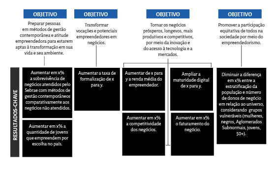 Tornar o empreendedorismo protagonista na transformação socioeconômica ambiental, além de ser um catalisador para a realização de sonhos dos brasileiros. As competências empreendedoras serão estimuladas em toda a sociedade e culturalmente valorizadas. Em 2035, a taxa de empresas com mais de 3,5 anos de existência será superior a 40%, aumentando significativamente o sucesso de negócios, respeitados na sua diversidade, caracterizados pela sustentabilidade, acesso à tecnologia, crédito, mercado, inovação e inclusão.