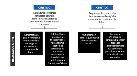 Elevar a prosperidade dos territórios e biomas, impulsionada pelas economias portadoras de futuro em ecossistema de negócios que valorizam o regionalismo, preservam a biodiversidade e geram valor agregado no território. O Brasil será referência para o mundo no desenvolvimento sustentável, alavancando empreendimentos, tecnologias e conhecimento. Em 2035, os territórios com ecossistemas empreendedores trabalhados pelo Sebrae terão seus Índices de Desenvolvimento Sustentável das Cidades 50% acima da média nacional.