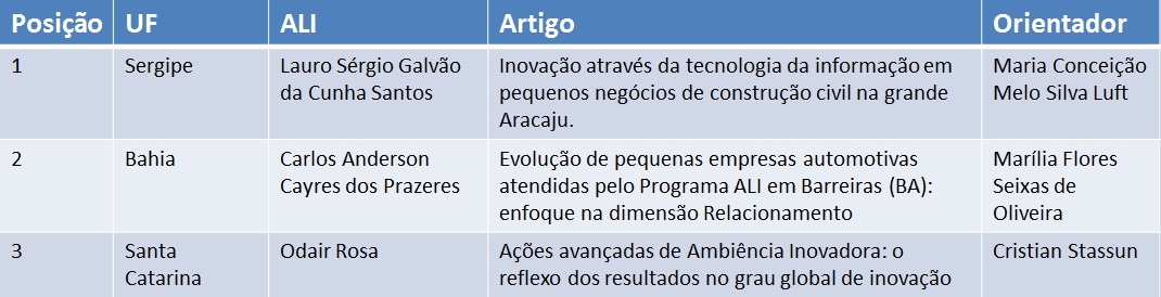 O administrador de empresas Carlos Cayres, 28, que atuou como Agente Local de Inovação (ALI) nos anos de 2013 e 2014, tem o que comemorar. Pela primeira vez na Bahia um agente foi premiado nos Cadernos de Inovação em Pequenos Negócios. Com o artigo “Evolução de pequenas empresas automotivas atendidas pelo Programa ALI em Barreiras (BA): enfoque na dimensão Relacionamento”, ele conquistou a segunda posição no ranking da publicação em 2015.