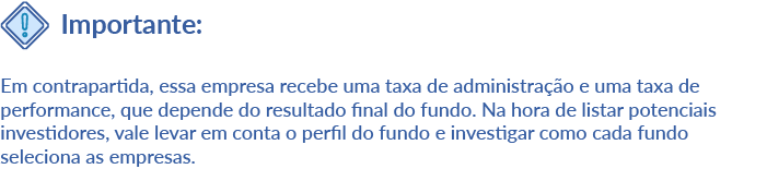 Esses fundos são formados por um grupo fechado de investidores, que podem ser empresas, pessoas físicas com capital relevante e investidores institucionais, como seguradoras, fundos de pensão e organizações governamentais e de fomento (Sebrae, Finep, BNDES, BID, entre outras).