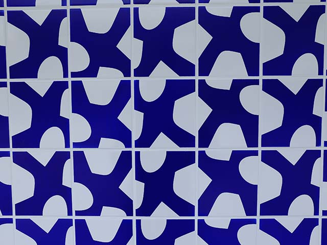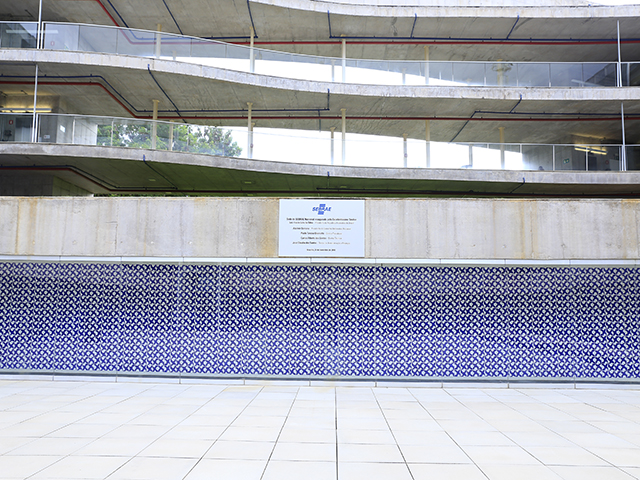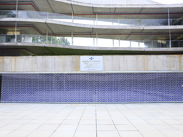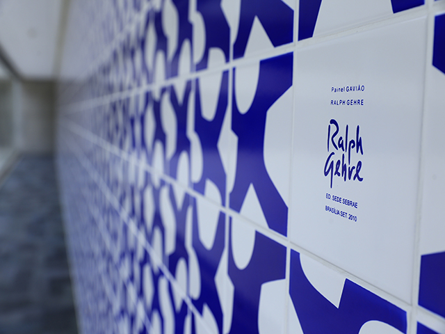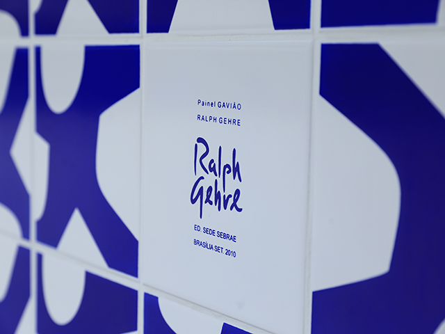 O painel de azulejos é inédito e exclusivo e faz parte de uma série especialmente desenvolvida para esse projeto de arquitetura. Intitulado "Gavião", tem inspiração nas aves do cerrado e nos eixos cruzados que o urbanista Lucio Costa usou para desenhar o Plano Piloto de Brasília. O autor, Ralph Gehre, presta homenagem ao artista plástico e professor Athos Bulcão, expressão máxima das artes brasilienses.