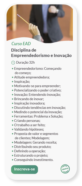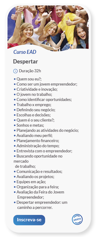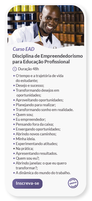 O Sebrae oferece cursos à distância, via internet, para a formação em metodologias de diferentes níveis de ensino: Fundamental, Médio, Profissional e Superior. Basta acessar a sala de aula, realizar a matrícula no curso desejado e pronto! Você já poderá iniciar os estudos.