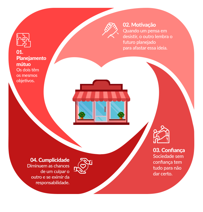 Em geral, as pessoas têm receio em abrir o próprio negócio. Por isso, casais empreendedores que sabem tirar proveito dessa união tornam-se cúmplices e compartilham riscos, além de ter mais chance de desenvolver a empresa.