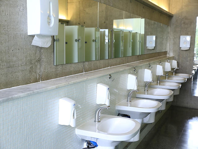 Mantendo o conceito de sustentabilidade, torneiras e mictórios possuem sensores automáticos.