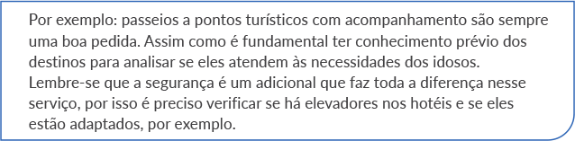 Alguns cuidados devem ser incluídos em todos os roteiros de qualquer destino para esse público-alvo.